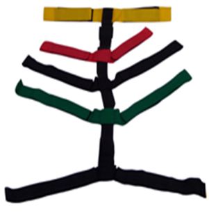 Confeccionado em fitas de 100% poliamida preta e coloridas em 50 mm de largura. Fecho de regulagem em velcro e regulador plástico preto.